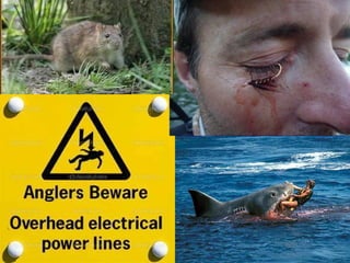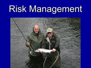 Mark provides guidance on risk management for angling activities. He discusses that [1] risk assessment involves identifying hazards, evaluating risks, and selecting control measures. [2] It is about balancing risk and benefit through sensible and flexible practices, not eliminating all risks. [3] Key steps include identifying hazards, those at risk, evaluating risks, selecting additional controls, providing training, and monitoring practices.