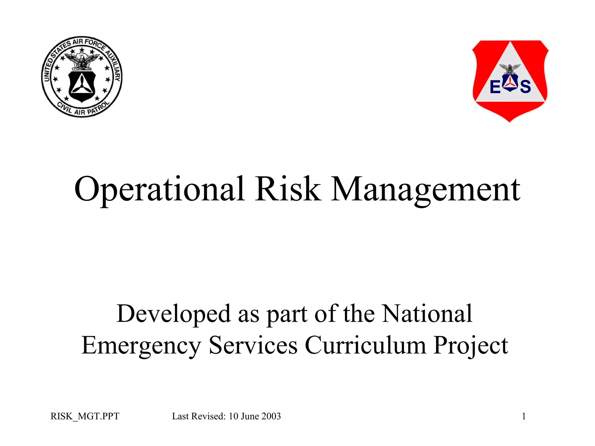 This document provides an overview of operational risk management (ORM). It describes the 6-step ORM process which includes identifying hazards, assessing risks, analyzing risk control measures, making control decisions, implementing controls, and supervising/reviewing. The goal of ORM is to systematically balance risk costs and benefits to ensure necessary risks are taken while preventing losses. Tools like risk matrices and various hazard identification techniques help objectively evaluate and mitigate risks.