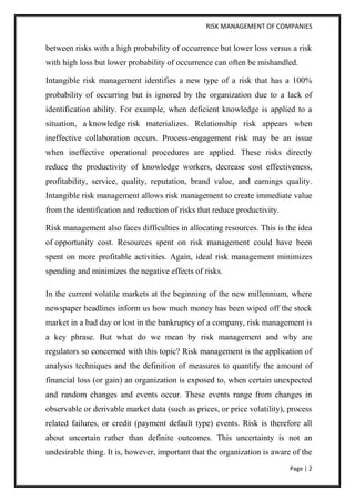 1) Risk management involves identifying, assessing, and prioritizing risks in order to minimize negative impacts and maximize opportunities. It also includes transferring, avoiding, reducing, or accepting risks.