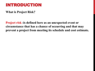 The document discusses causes of delay in large construction projects. It identifies 73 potential causes of delay which are categorized into 9 groups: project, owner, contractor, consultant, design-team, materials, equipment, manpower, and external factors. The research methodology involved surveying 23 contractors, 19 consultants, and 15 owners using a questionnaire to evaluate the frequency, severity, and importance of each potential cause of delay. Statistical analysis was used to rank the causes based on these indices and determine the level of agreement between the different parties' rankings. The findings showed the top causes of delay differed between owners, contractors, and consultants.