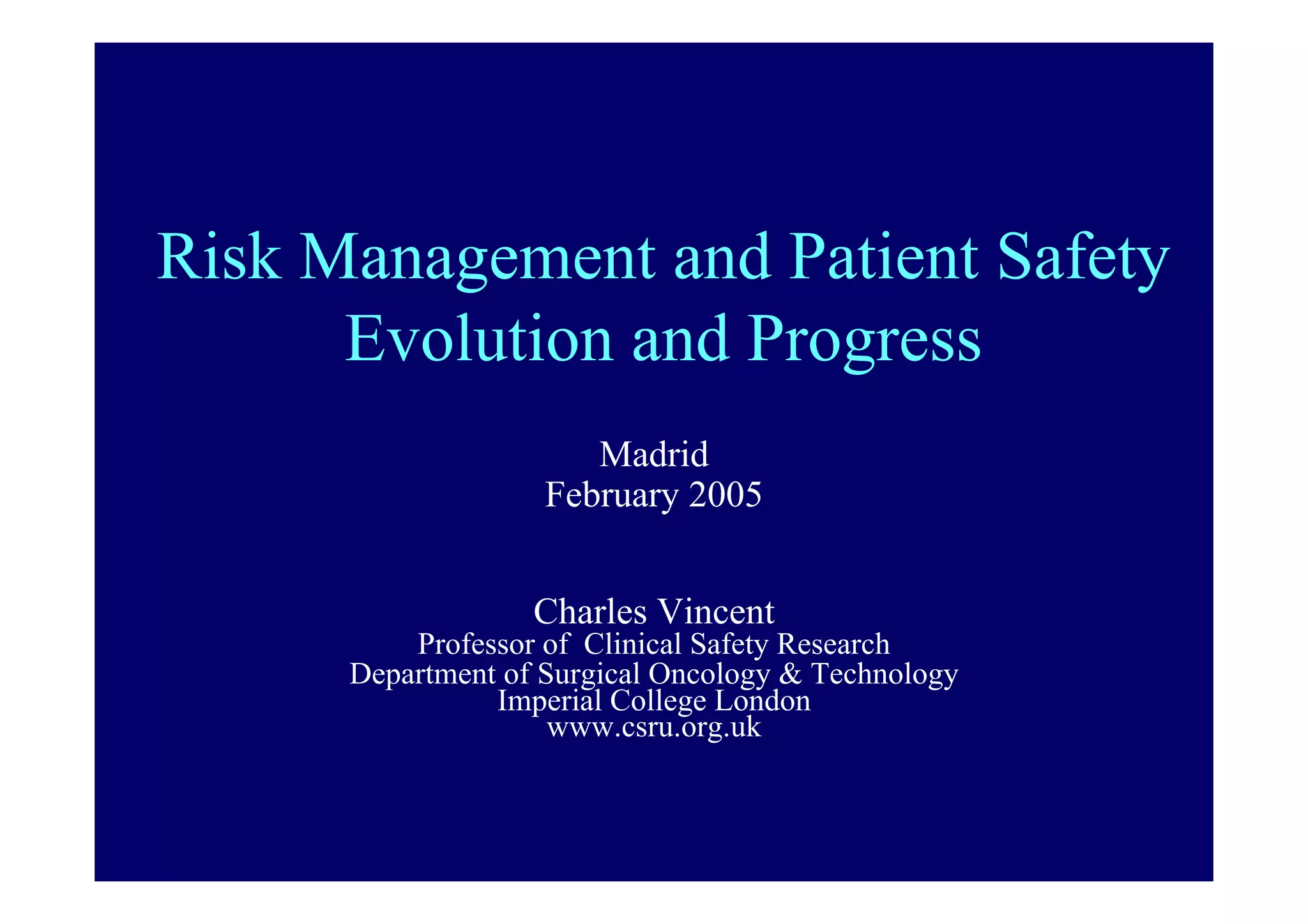 The document discusses the evolution of risk management and patient safety in healthcare, highlighting a shift from legal to clinical risk management and the importance of understanding human factors in errors. It presents alarming statistics on adverse events and their costs, emphasizing a systems approach to safety rather than a blame-centered one. Key solutions include improving incident reporting, fostering a safety culture, and implementing multi-level interventions to reduce medical errors.