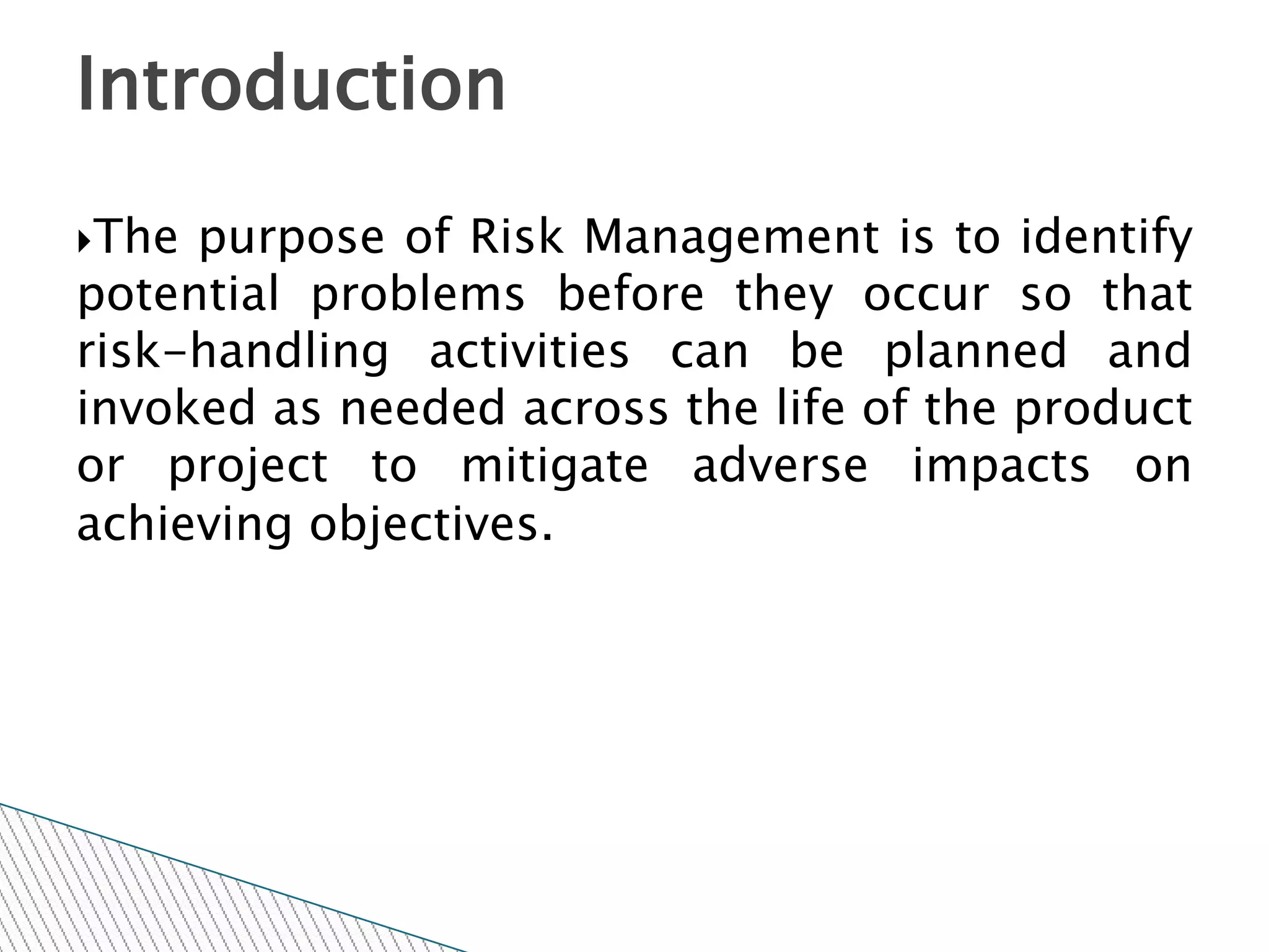 This document discusses risk management in the software industry. It outlines the importance of risk management, including its role in frameworks like CMMI, ISO 20000, TL 9000, and ITIL. It then describes the typical risk management process, which involves defining a risk management strategy, identifying and analyzing risks, and handling risks through mitigation plans. Finally, it lists common activities in risk management, such as identifying risk sources and categories, evaluating risks, developing mitigation plans, and implementing those plans through risk monitoring.