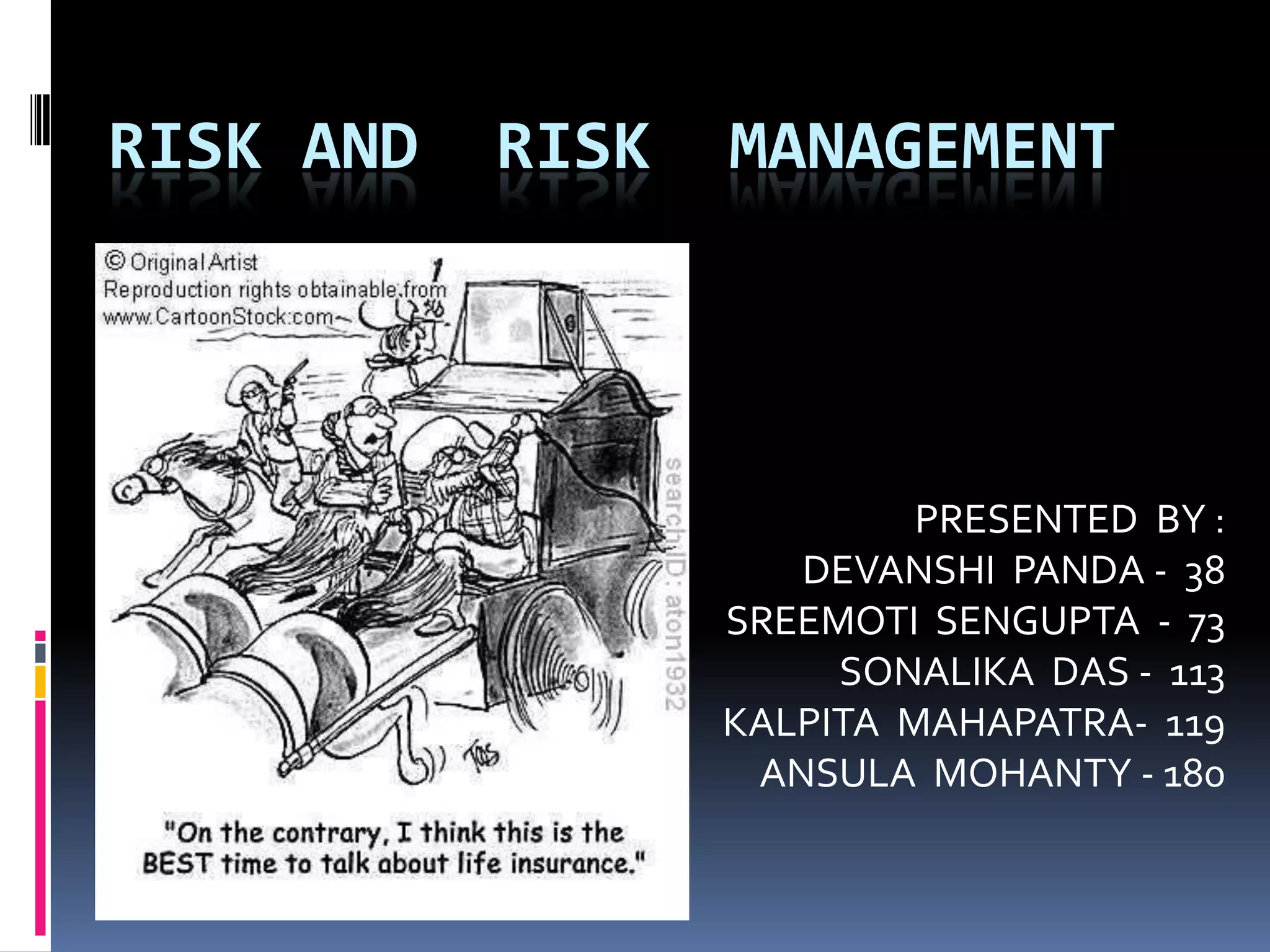 This document discusses risk and risk management. It defines risk as uncertainty about potential losses and categorizes risks as objective or subjective. It also discusses concepts like chance of loss, perils, hazards, and different types of risks like fundamental risk, particular risk, and enterprise risk. The objectives and steps of the risk management process are also outlined, including identifying exposures, analyzing frequency and severity of losses, selecting risk control or financing techniques, and implementing and monitoring the risk management program.