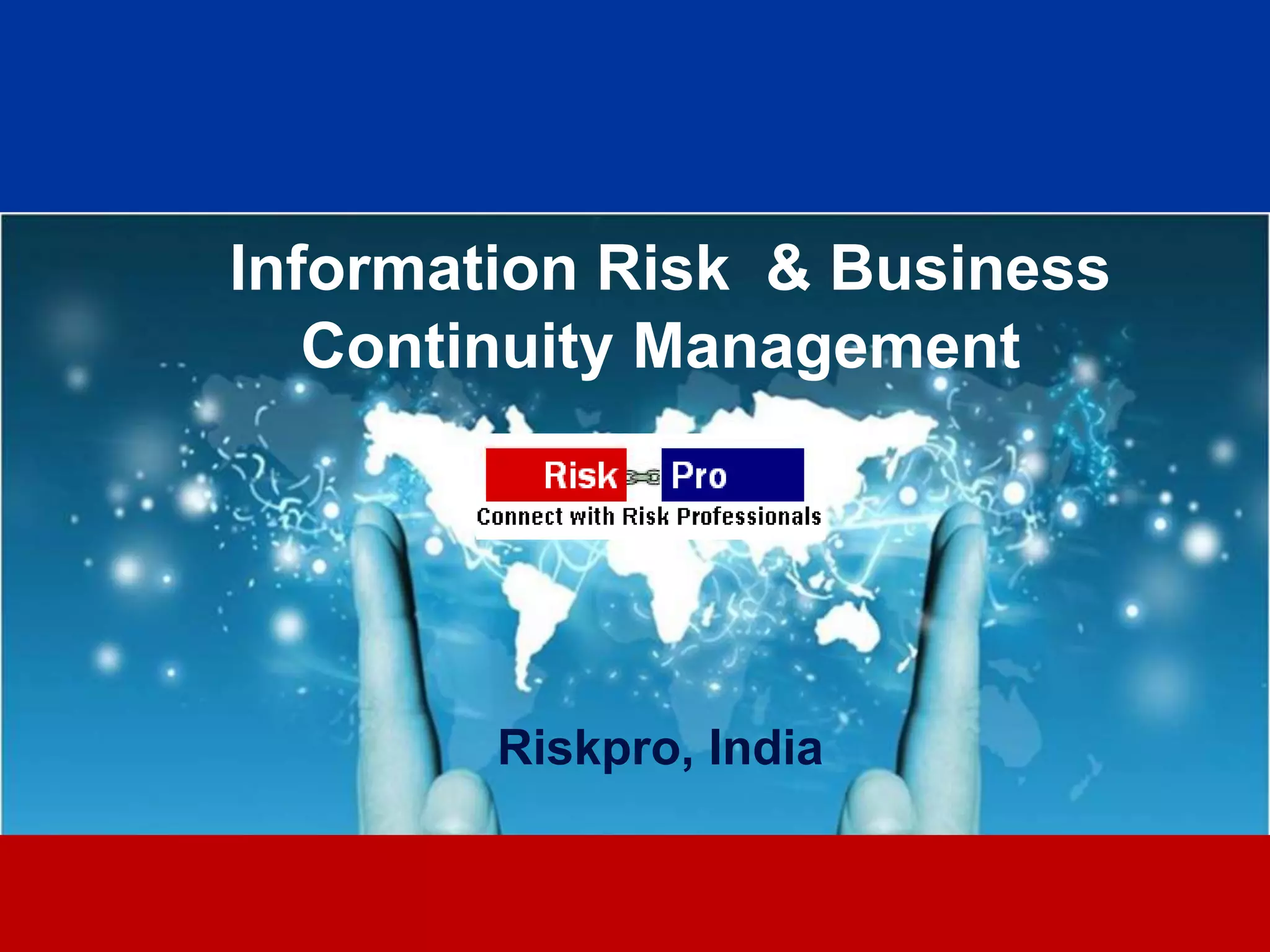 Riskpro is an Indian risk management consulting firm with offices in several major cities. It provides a wide range of risk advisory services including Basel II/III compliance, corporate risk assessment, information security, and business continuity planning. The firm differentiates itself through its focus on risk management, experienced team with over 200 cumulative years of experience, hybrid delivery model, and ability to take on large complex projects. It aims to be a preferred provider of governance, risk, and compliance solutions to mid-large sized companies in India.