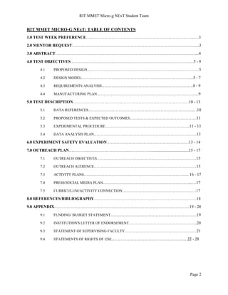 The document outlines the design and testing plans for a device called ORCHID that will be used to collect rock samples from an asteroid in microgravity. It describes the one-handed mechanical design of ORCHID that uses extendable fingers to capture samples in removable capsules. Tests proposed include timing trials, material property tests, and operational tests to evaluate ORCHID's performance in capturing samples from multiple sites without cross-contamination.