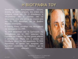 για τον ποιητή. Ο νεαρός τότε ποιητής, Γιάννης