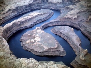 This document discusses river rejuvenation and the landforms it produces. River rejuvenation occurs when a river's base level changes, such as due to sea level change or glacial isostatic adjustment. This decreases the river's gradient, increasing its erosional power. Key landforms produced include waterfalls, incised meanders, river terraces, and knickpoints as the river grade is adjusted to the new base level.