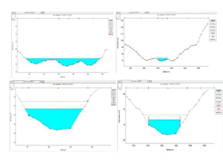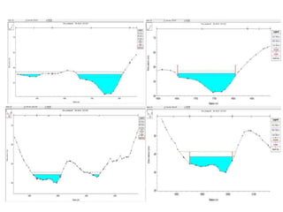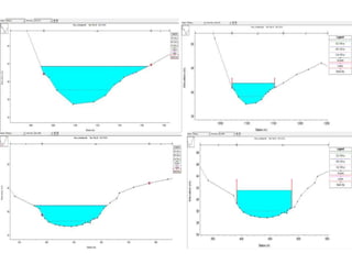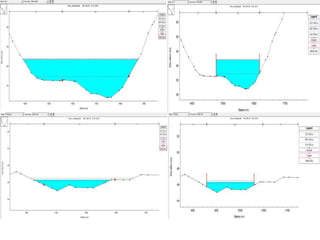 The document summarizes the objectives, methodology, and results of a study analyzing the morphometric characteristics and river training needs of the Venkatapura river watershed in India. The objectives were to understand the river's behavior, protect surrounding areas from flooding, and minimize bank erosion. Tools like ArcGIS and HEC-RAS were used to analyze watershed parameters, model steady flows, and identify critical cross-sections. Key findings included a drainage density and bifurcation ratio indicating a moderate watershed, sinuosity suggesting some meandering, and critical sections found to change course or overtop banks during 100-year flows. Preventive bank protection structures were recommended.