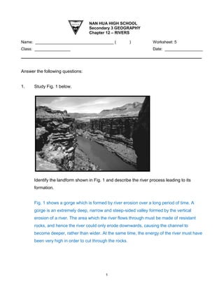 1) The document is a geography worksheet about rivers that contains 3 questions.
