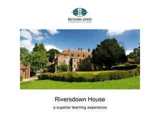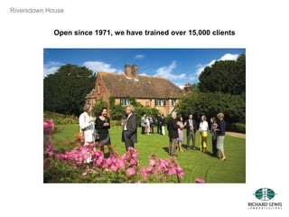 Riversdown House is an English language and cross-cultural training center that has been operating since 1971, training over 15,000 clients. It takes a holistic approach to language, communication, and cultural learning, offering carefully tailored programs to meet business objectives. Riversdown House has an experienced team of qualified trainers and offers private accommodations, sporting facilities, and excursions to local places of interest. It has trained clients from a wide range of international organizations in a historic building dating back to 1328, allowing students to focus 100% on learning in a beautiful environment.