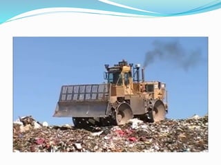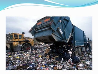 Solid waste management involves the collection, treatment and disposal of solid waste. The document discusses various aspects of solid waste management including definitions of solid waste and SWM. It describes sources and types of waste as well as common collection and disposal methods like landfilling, incineration, compaction and pyrolysis. A case study on SWM in Mumbai outlines the waste generation, collection processes and disposal methods used. The objectives and importance of effective SWM are also highlighted.