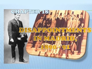Rizal faced many disappointments in Madrid from 1890-1891. He was unable to get justice for his family and tenants from the Spanish authorities. More bad news arrived that his brother and others had been deported. Rizal's relationship with Leonor Rivera ended when she married another man. He challenged two men, Antonio Luna and Wenceslao Retana, to duels after insults but the disputes were resolved. Rizal abdicated his leadership role in the Filipino organization after losing an election to del Pilar, increasing rivalry between them. By early 1891 Rizal left Madrid for Brussels to finish writing his second novel.
