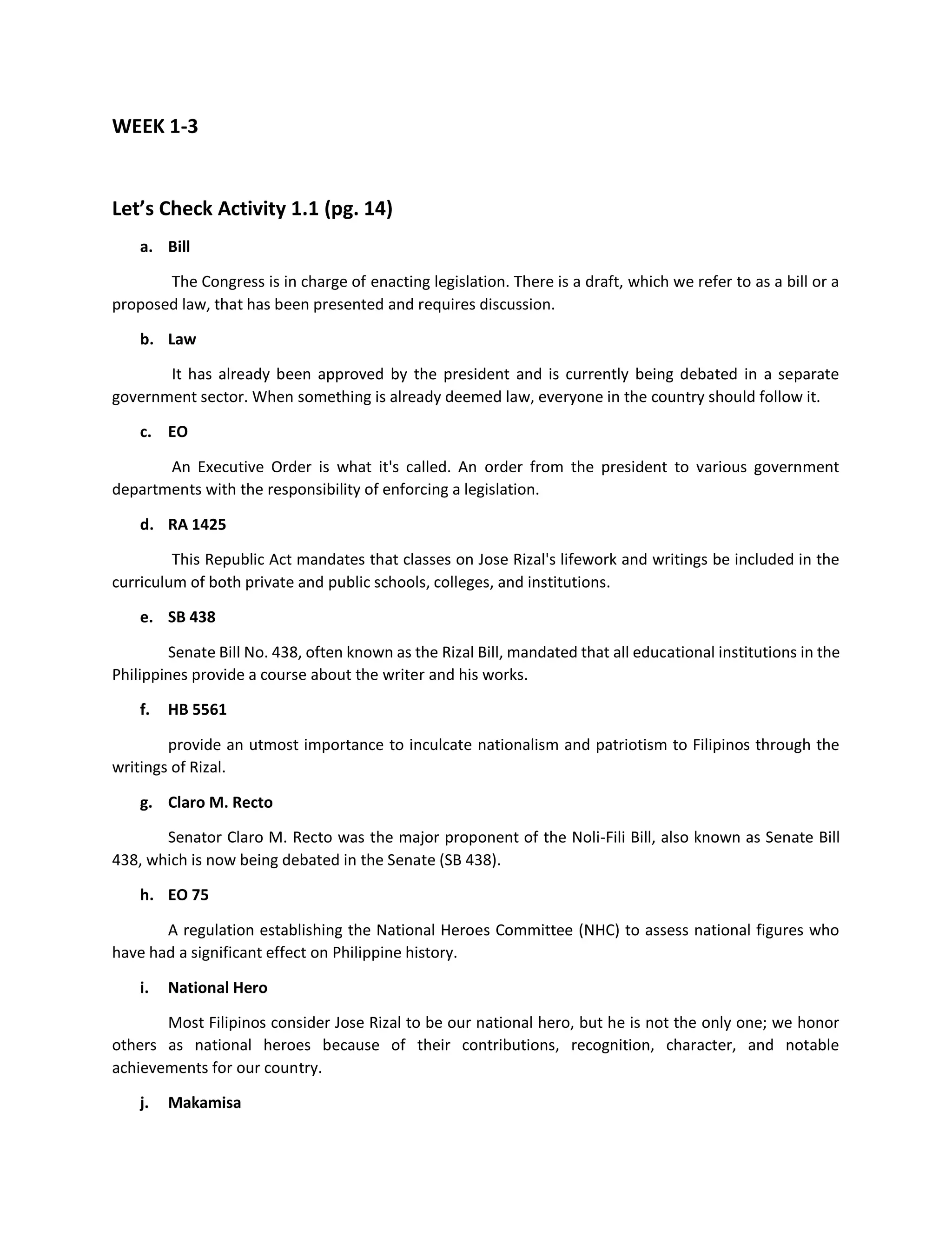 1. A review of terms related to the Rizal Law such as bill, law, executive order, and national hero.