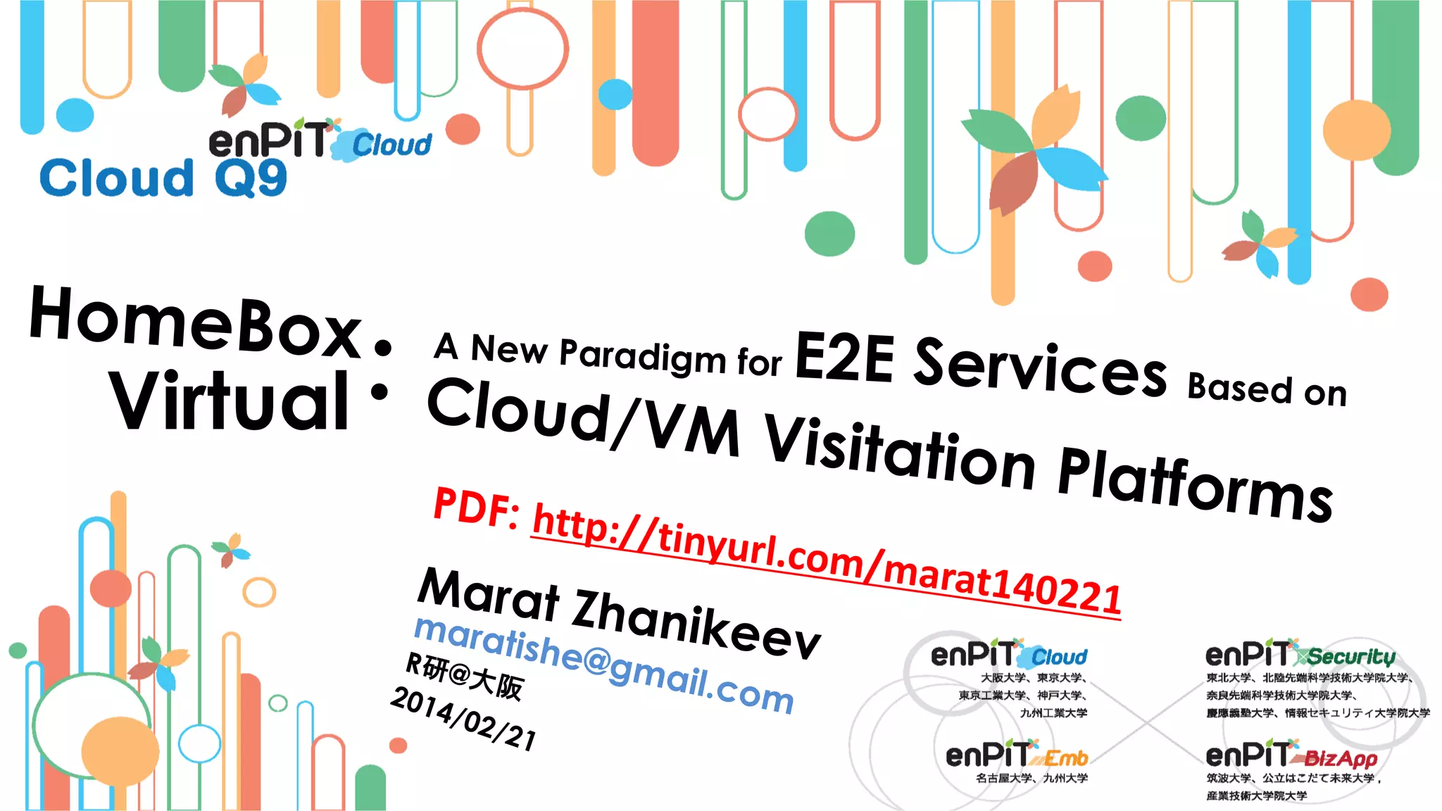 The document discusses the concept of a homebox designed for end-to-end services utilizing cloud visitation platforms, highlighting its components, functionalities, and early use cases for performance probing and QoS policy. Challenges such as high costs and maintenance issues are noted, along with the beneficial aspect of integrating multiple applications in a single device through a tiered approach. The potential of cloud visitation platforms to support a range of applications and improve home network management is emphasized.