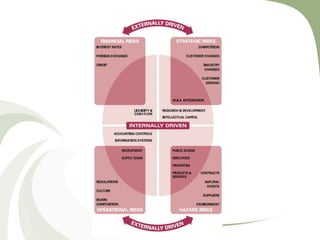 This document discusses risk management. It defines risk as the probability of a negative event and the potential consequences. It distinguishes between risk, which can be quantified with probabilities, and uncertainty, which cannot be quantified. The main categories of risk are strategic, financial, and operational. Financial risk includes market, credit, liquidity, and other risks. The document traces the history of risk concepts from ancient times through modern developments in probability theory and risk management as a discipline.