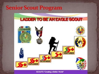 1. It outlines the Scout Oath, Scout Law, motto ("Be Prepared"), and slogan ("Do a Good Turn Daily") that guide senior scouts.