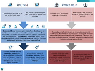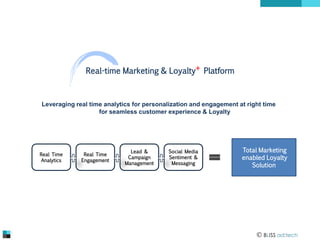 The Real-time Marketing & Loyalty+ Platform leverages real-time analytics for personalization and engagement to provide a seamless customer experience and build loyalty, allowing for real-time engagement, lead and campaign management, and social media sentiment analysis and messaging alongside a total marketing-enabled loyalty solution. The platform enables customized banners, chat support, forms, and scoring to provide personalized offers and capture new leads while tracking members' social media sentiment to provide relevant offers.