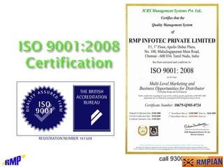 The document discusses network marketing and provides details about the RMP Infotec company. It outlines that RMP Infotec is the number one multi-level marketing company in India operating on a binary plan. It provides information on the promoters, products offered, payment plan and business opportunities through the company.