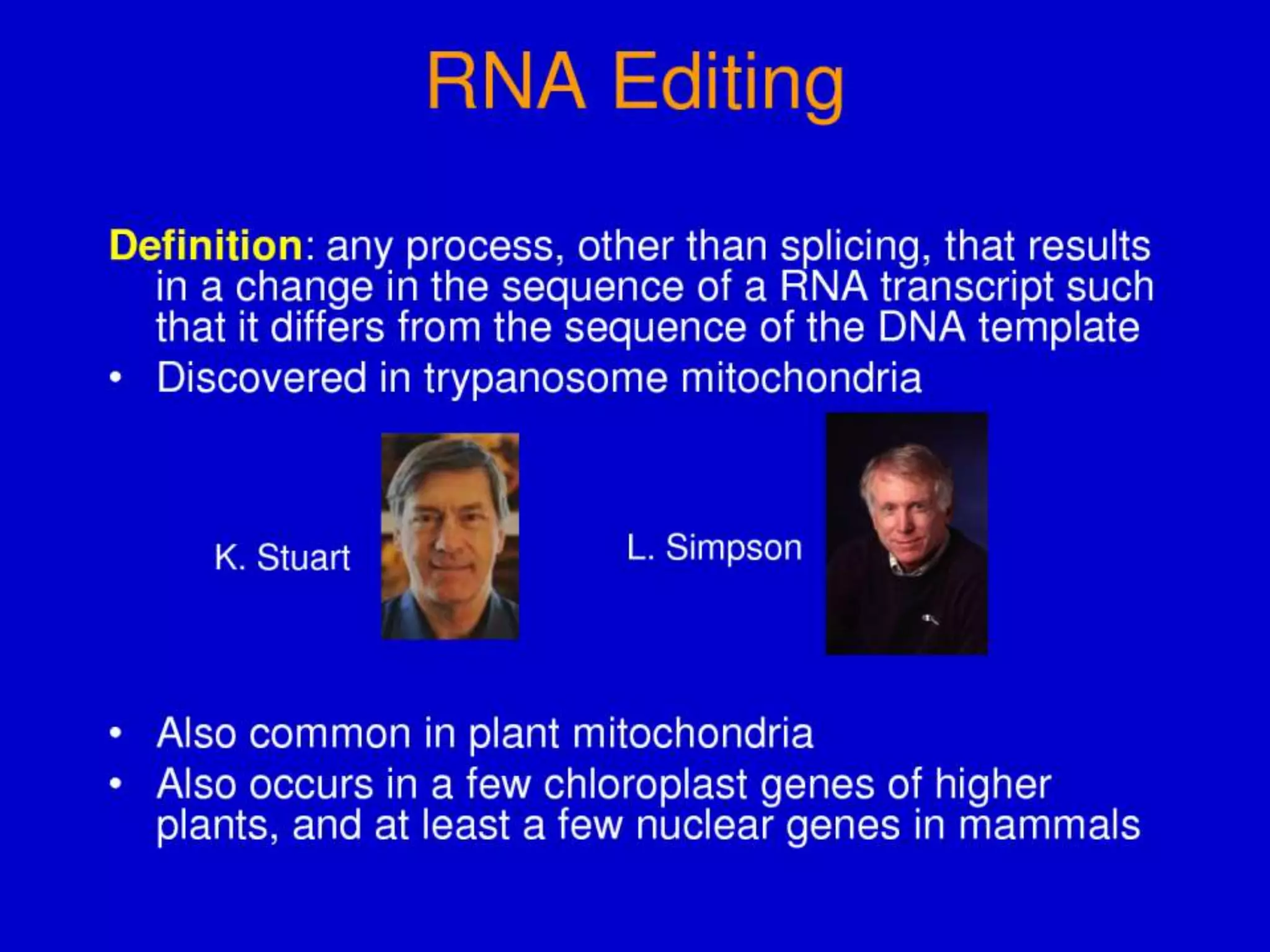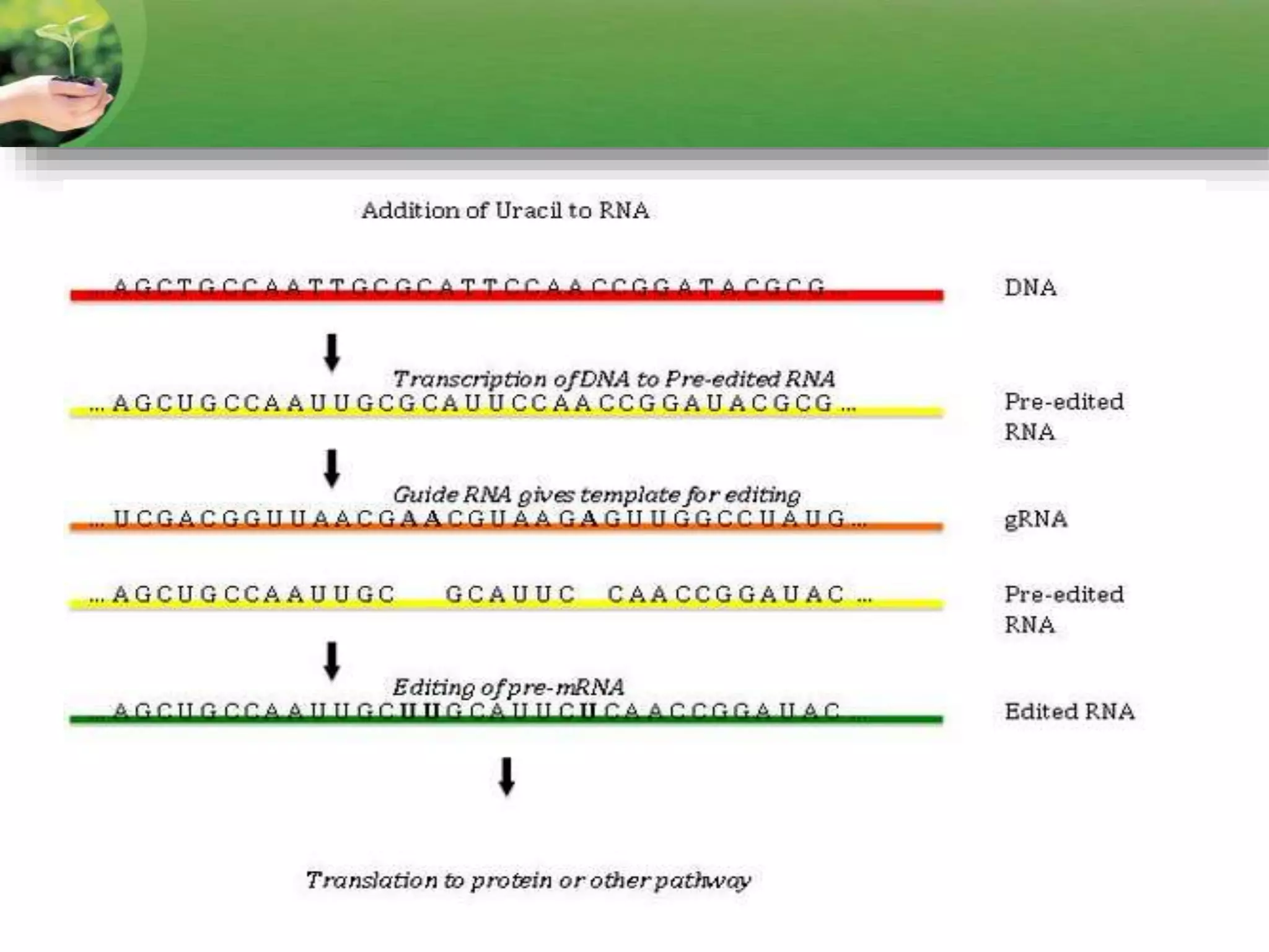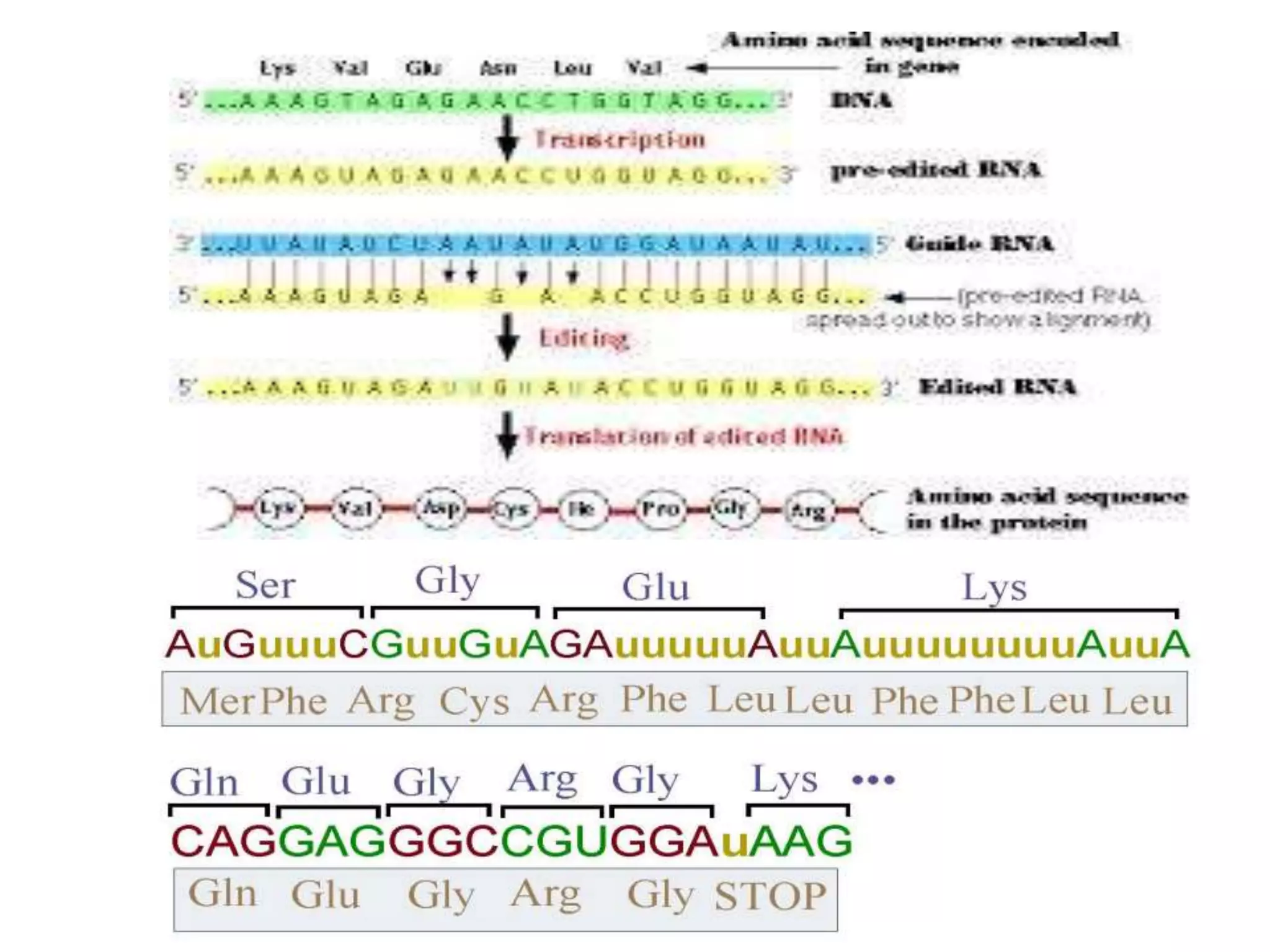 - RNA editing is a process where the RNA sequence differs from the DNA sequence due to modifications like base substitutions, insertions or deletions.