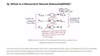 2. Hidden State: At each time step, the RNN maintains a hidden