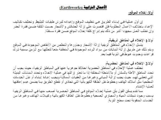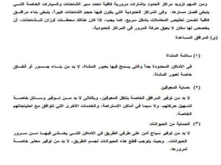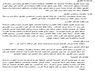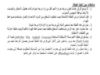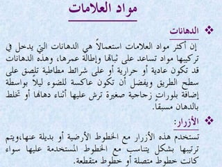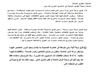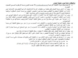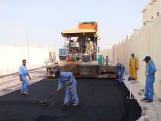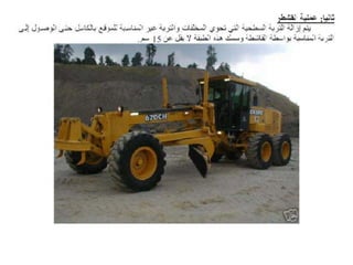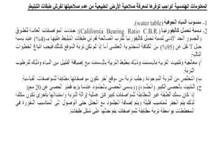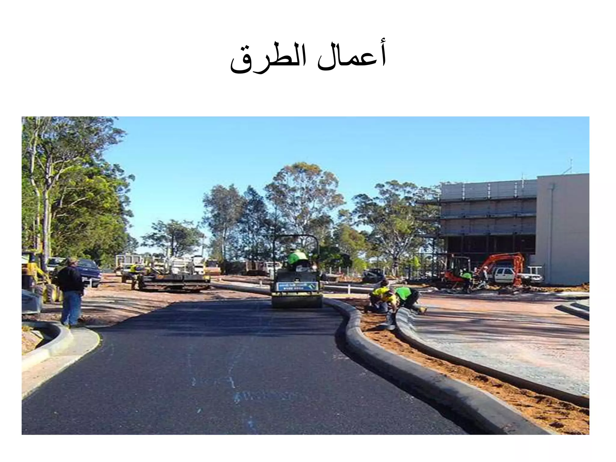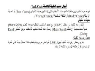 يتناول الوثيقة أنواع الطرق وأعمال البناء المتعلقة بها، موضحًا التصنيفات الرئيسية للطرق مثل الطرق الرئيسية والثانوية والفرعية، بالإضافة إلى الأعمال اللازمة مثل التمهيد والحفريات والقاعدة. كما يشرح الوثيقة المعدات الثقيلة المستخدمة في الأعمال الإنشائية، مثل الحفارات والشاحنات والجرارات وغيرها، والمواد الأساسية المستخدمة في بناء الطرق مثل الأسفلت والحصمة والرمل. تشمل الوثيقة أيضًا أهمية التصميم الصحيح وإزالة العوائق لضمان عدم تأثيرها على جودة المشروع.