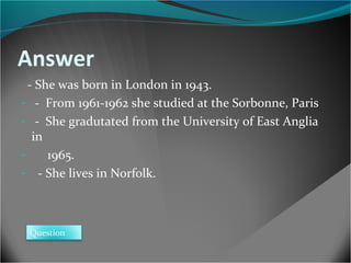 Lev is from a village called Auror in an unspecified Eastern European country. He immigrates to England where he struggles to find work and housing as a poor immigrant. Lydia helps him by finding him a job washing dishes in a restaurant. He later does farm work picking asparagus. Lev misses his daughter back home and has trouble fitting into London society.