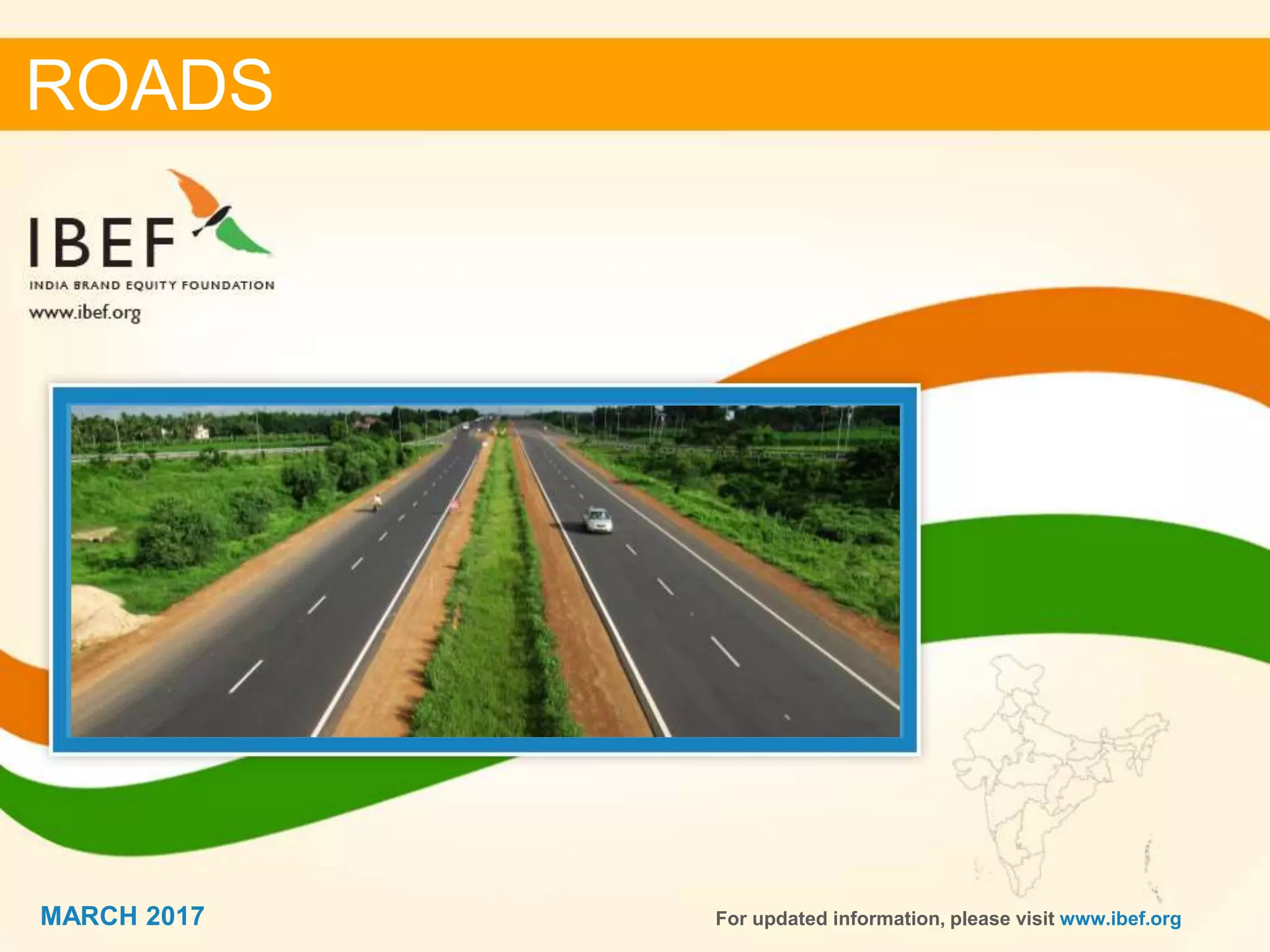 The document provides an overview of the roads sector in India. Some key points: