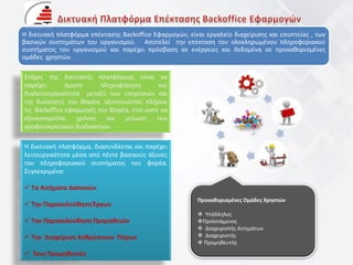 Η δικτυακή πλατφόρμαεπέκτασης Backoffice Εφαρμογών, είναι εργαλείο διαχείρισης και εποπτείας , των