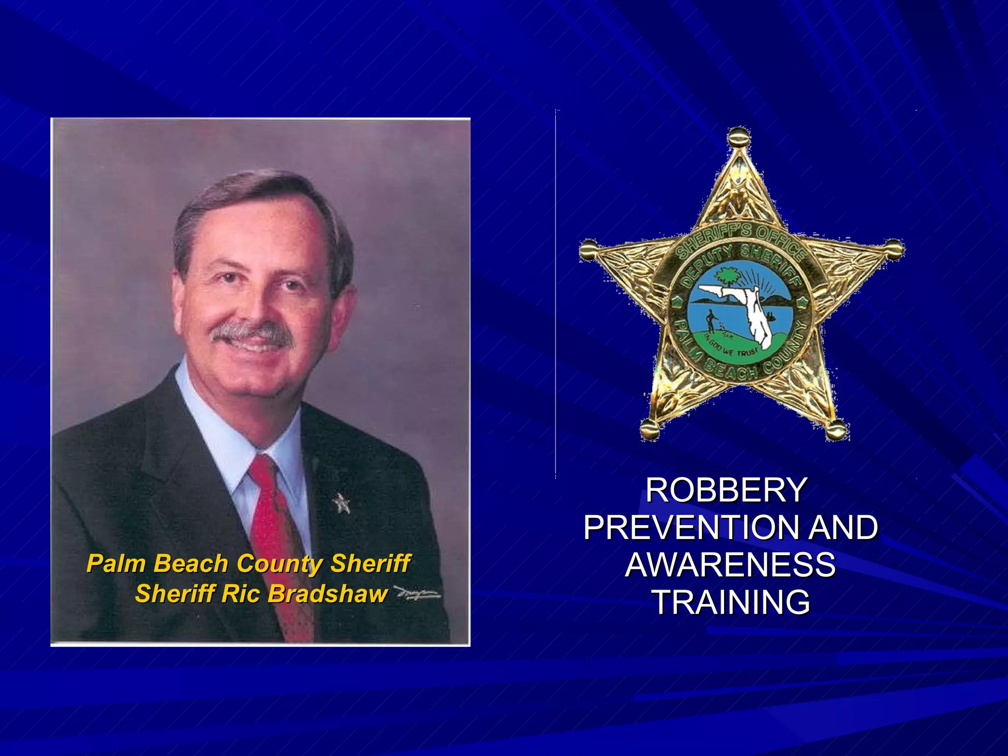 This document provides training on robbery prevention and awareness. It discusses the characteristics of robberies, what to do during and after a robbery occurs, and techniques for preventing robberies. The training covers identifying robbery suspects and vehicles, protecting the crime scene after a robbery, and cash handling and security practices to deter robberies. The goal is to educate business owners and employees on how to stay safe during a robbery and assist law enforcement in preventing future crimes.