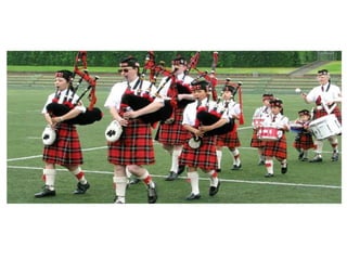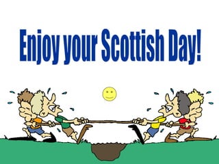 The document discusses a Scottish Week celebration at a school. Students are learning about Scottish poet Robert Burns and participating in activities like eating traditional Scottish food in the school cafeteria. On Robert Burns Day, his life and famous works are highlighted, including songs like "Auld Lang Syne". Students also learn about Scottish sports like golf, Highland Games involving caber tossing and tug-of-war.