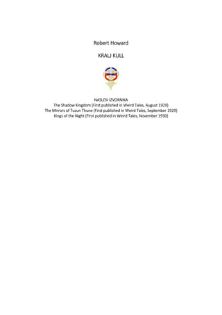 Dokument sadrži priču o Kullu, kralju Valusije, dok promatra vojsku koja marchira kroz grad i suočava se s napetostima između njega i piktskog izaslanika. Kull se suočava s neodređenim osjećajem nesigurnosti u svojoj ulozi kralja i izazovima koje donosi vođenje različitih plemena. Kroz njegovu perspektivu, istražene su teme moći, identiteta i međusobnih sukoba između kultura.
