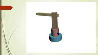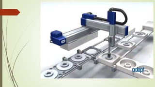 This document discusses different types of industrial robots classified by their arm configuration, power source, and path control. It describes Cartesian robots which move along three orthogonal axes and have a rectangular working envelope. Cylindrical robots use a vertical column that can rotate and slide up/down, giving them a cylindrical working volume. Both robot types have advantages like payload capacity and work area, as well as disadvantages like limited movement directions and lower accuracy for cylindrical robots. Common applications include pick and place, assembly, welding, and machine loading/unloading.