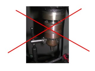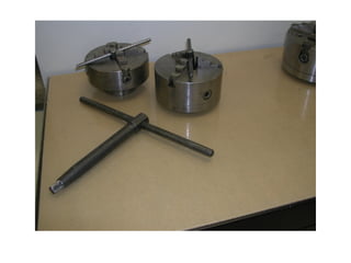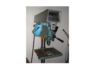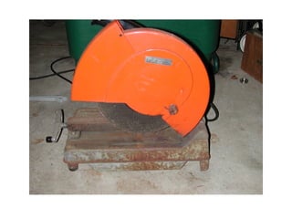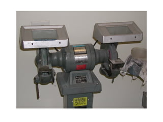 2) It details safe practices for using various hand tools, power tools, and stationary machinery, emphasizing inspection, protective gear, speeds/feeds, and secure workholding.