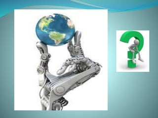 This document discusses robotics and provides information on various topics related to robotics. It defines robotics as a system involving sensors, control systems, manipulators, and software working together to perform tasks. Designing, building, programming, and testing robots requires knowledge of physics, engineering, mathematics, and computing. Robots are used in applications that are dangerous for humans like industrial activities, exploring volcanoes, and locating sunken ships. The document also discusses robotics in healthcare, including uses for surgical robots, prosthetics, medical capsules, and potential future applications of minirobots in eye surgery. Several innovative modern robot designs are presented, such as humanoid androids, legged robots, mouse-inspired robots, social robots