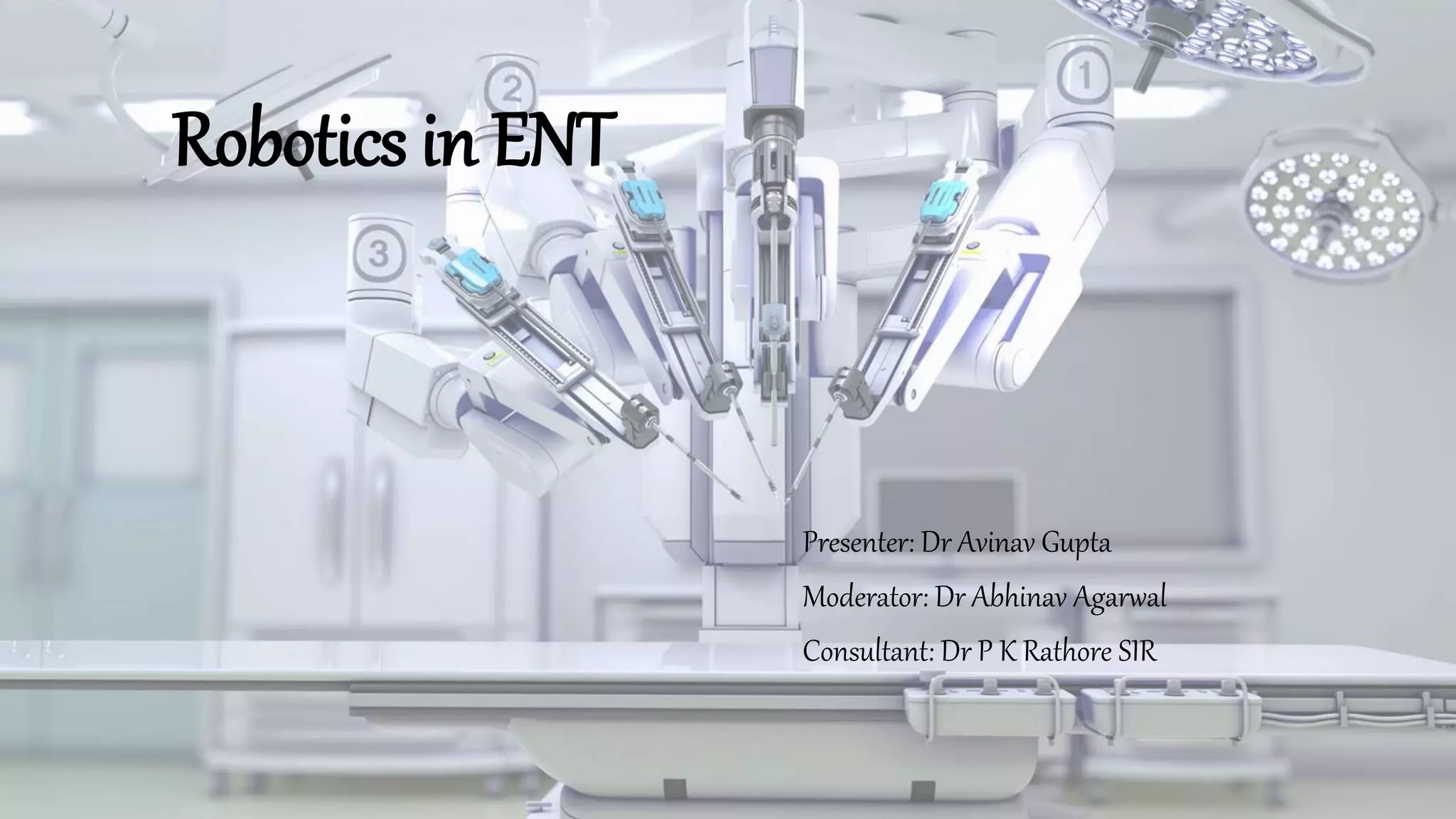 This document discusses the history and applications of robotics in ENT surgery. It begins with definitions of medical robots and an overview of their history. It then focuses on specific ENT applications including: