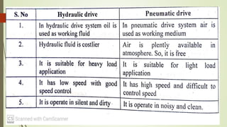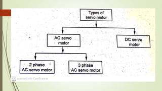 This document discusses various robot drive systems and end effectors. It describes several types of drive systems including hydraulic, pneumatic, and electric drives. Hydraulic drives are suitable for heavy loads but require more maintenance. Pneumatic drives are cheaper but generate more noise and vibration. Electric drives offer cleaner operation but require larger motors. Within electric drives, the document discusses stepper motors, servo motors, and their operating principles. It also covers various types of actuators and their applications in robotics. Grippers are discussed as a type of robot end effector.