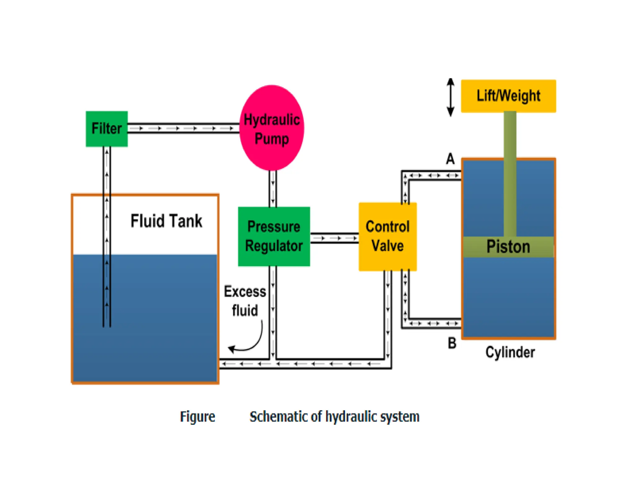 system, oil is used as a working fluid instead of compressed air. Hydraulic