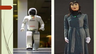 The document provides an overview of robotics, including the key topics of: building blocks of robots such as actuators, sensors, processors and controllers; classifications of robots into manipulators, mobile robots, and humanoids; functions involved in robotic movement; software architectures; applications of AI in robotics; application domains; and pros and cons of robots. It introduces robotics and defines a robot, then discusses each topic in 1-2 paragraphs with examples.