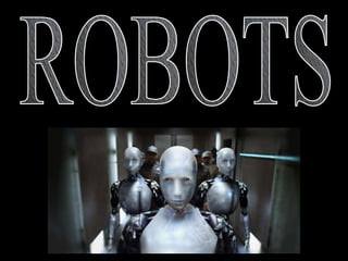 Robots are mechanical creations that are programmed to perform specific tasks for humans. They can be used for industrial labor, medical procedures, and even as toys or household assistants. While robots currently benefit society by augmenting the workforce, their role is predicted to expand significantly in the future as personal assistants and in performing dangerous jobs.