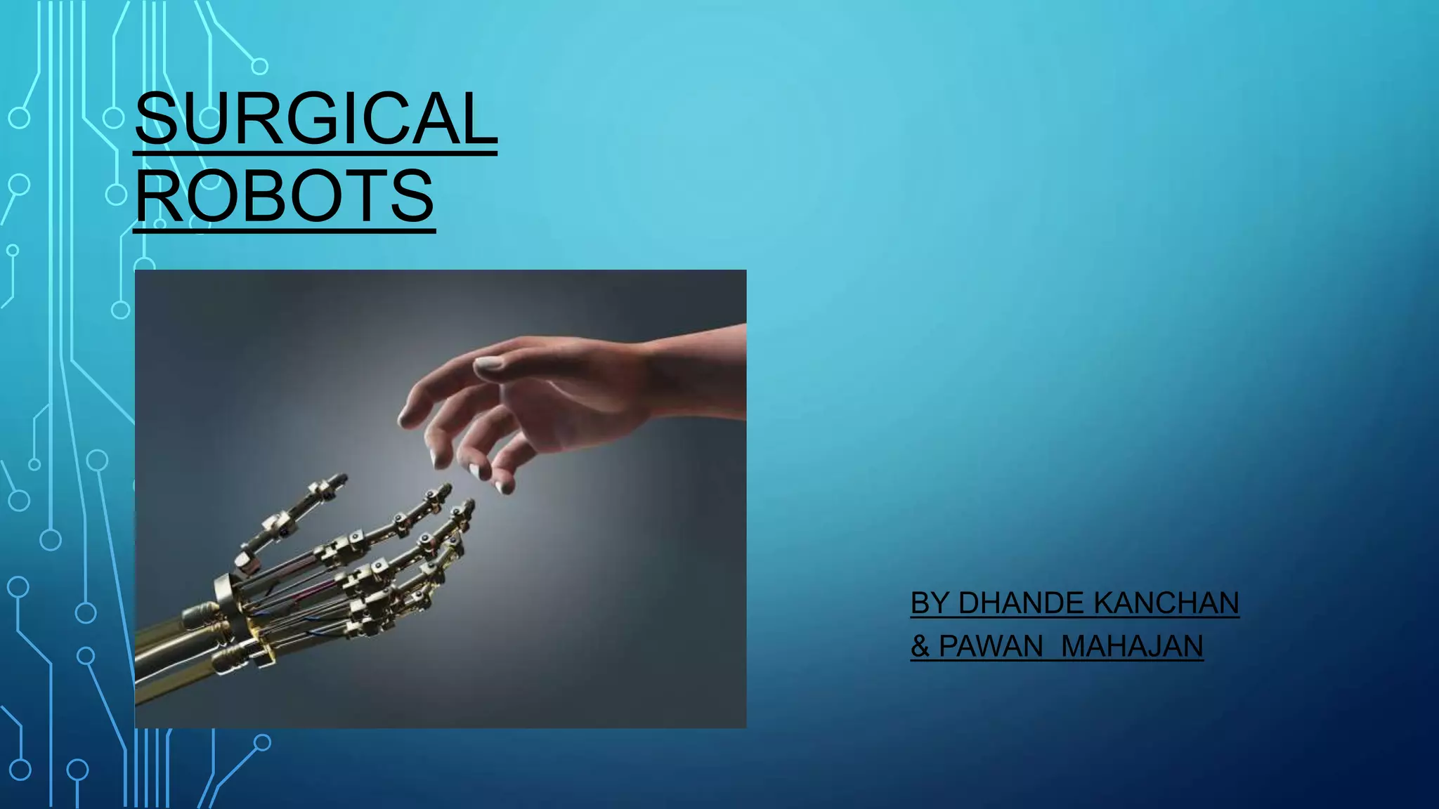 The document discusses the evolution and application of surgical robots, highlighting their advantages and disadvantages in various medical fields such as cardiology, gynecology, and urology. It outlines three classifications of surgical robots: supervisory controlled systems, tele surgical systems, and shared control systems, along with the history of their development since the late 1990s. Despite the promise of improved precision and reduced recovery time, challenges such as higher costs and compatibility issues with existing instruments persist.