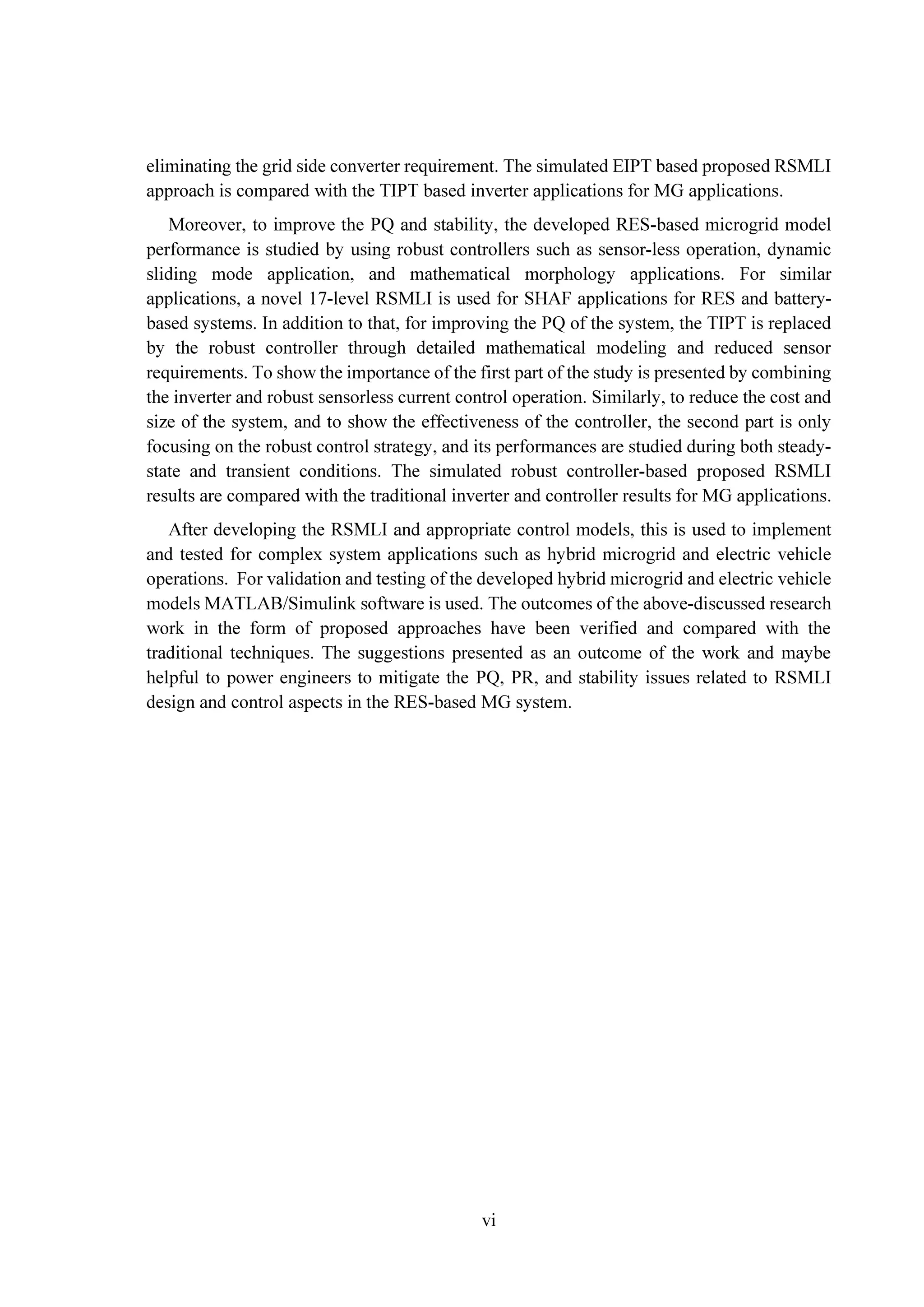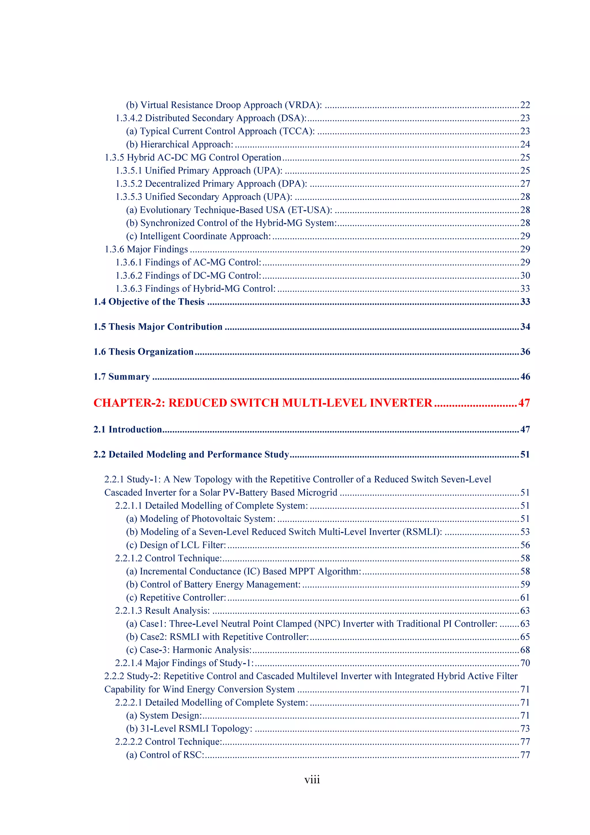 The document discusses hybrid microgrid applications involving renewable energy sources like solar and wind. It notes that the variable output from these sources can cause power quality issues in hybrid microgrids. Two studies are proposed to address this: 1) A robust control approach is proposed to integrate a DC-grid based wind energy conversion system to improve reliability. 2) A novel centralized energy management approach is suggested to suppress voltage variations and improve power quality, using a battery energy storage system. The document also reviews various multilevel inverter topologies used for renewable energy integration and highlights the need for improved topologies to balance capacitor voltages and minimize harmonics.