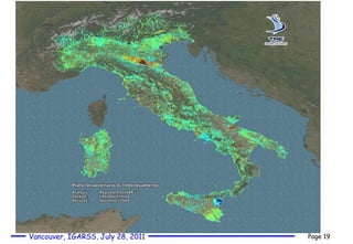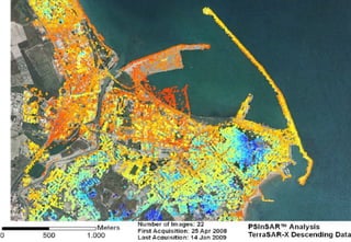 The document discusses advances in SAR interferometry over the past 20 years for measuring millimeter-scale land motion. Key points include: