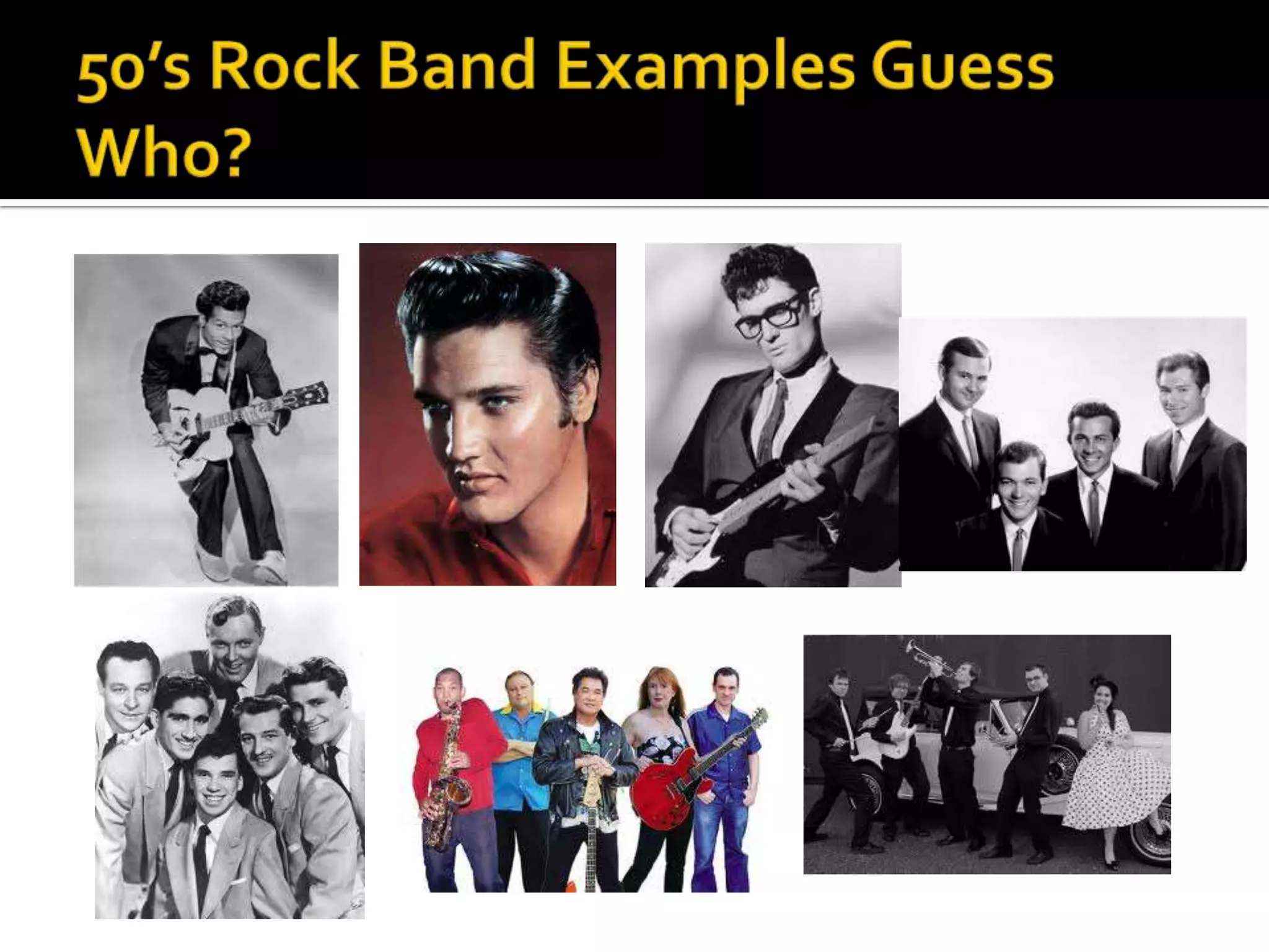The document outlines the histories and impacts of iconic figures in rock music, focusing on Elvis Presley and Chuck Berry. Presley, known as the 'King of Rock and Roll,' popularized rockabilly and had a profound influence on music until his untimely death in 1977, while Berry played a pivotal role in defining rock and roll with his songwriting and guitar skills. Additionally, the document discusses the censorship in music and the emergence of heavy metal, noting the influential contributions of artists like Ronnie James Dio.