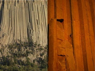 The document discusses the three main rock groups: igneous, sedimentary, and metamorphic. Igneous rocks form from cooling magma, either underground (intrusive) or above ground (extrusive). Sedimentary rocks form through the compaction and cementation of sediments. Metamorphic rocks are formed from existing rocks undergoing heat and pressure without melting. The rock cycle diagram shows how rocks continuously change between these three types through various geologic processes.