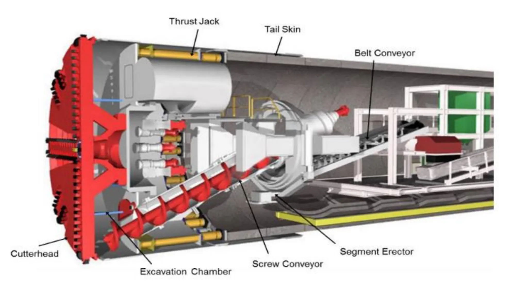 A shield also includes back-up infrastructure to erect the tunnel support (lining) and to