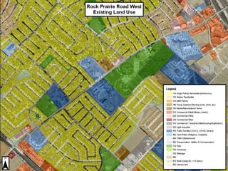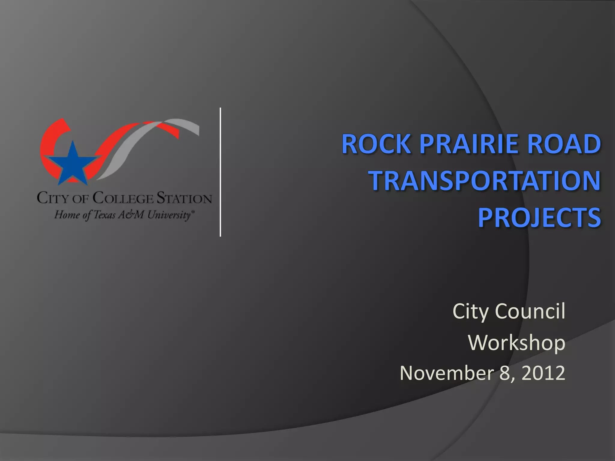 The document discusses three projects along Rock Prairie Road: rehabilitating the east side pavement, expanding the overpass, and widening the west side. For the overpass, $4.6 million was allocated for adding a lane and multi-use paths. Design will be completed in January 2013 and construction will begin in spring 2013. Widening the west side is in the 2008 bond and traffic data collection was done in 2011. Design funding is included for 2013 and construction will follow the overpass work.
