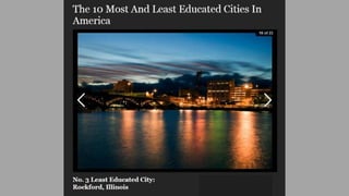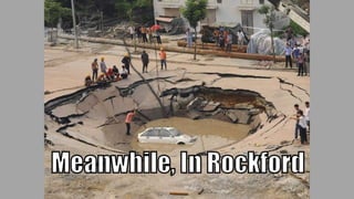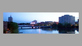 This document highlights some of the cultural attractions and history in Rockford, Illinois that visitors may be unaware of. It mentions Frank Lloyd Wright-designed buildings, theaters, gardens, parks, and museums in the city. The document aims to show the side of Rockford that loves culture and the arts, beyond just its challenges, to give people a fuller picture of the city.
