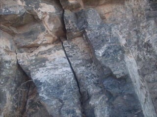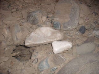 This document discusses and provides examples of different types of rocks found in California, including metamorphic, igneous, and sedimentary rocks. It describes finding white marble in Los Gatos Creek, serpentine in the hills of Parkfield, sandstone formations in Coalinga, a conglomerate rock with bone particles near Coalinga's oil fields, and granite and pegmatite on the shore of Kaweah Lake in Visalia. The document also provides some geological context and background about the locations.