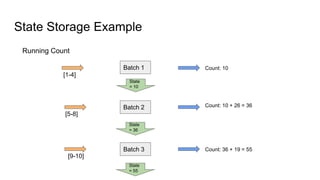 The document describes the implementation of a RocksDB state store in structured streaming to address scalability and latency issues found in the current hashmap-based approach. It outlines the transaction-based usage of RocksDB for state management across batches, ensuring consistency, isolation, and durability through a series of operational tasks, including snapshot creation and delta file management. Performance analysis and configurations are provided, showing setup details and the comparison of garbage collection times between the two storage methods.
