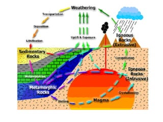 The document discusses the rock cycle and the formation of different rock types: